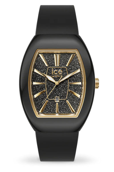 Ice Boliday Dome Black Glitter Gold Small Watch
