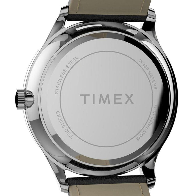 The Timex Easy Reader 40 elevates classic design with a bold white dial and striking black Arabic numerals for outstanding readability. Featuring a polished round metal case and a smooth black natural leather strap, this unisex watch embodies refined simplicity while ensuring day-long comfort. Protected by mineral crystal glass and water resistant to 30 meters, it is both practical and stylish for any occasion. The reliable quartz movement and signature Timex craftsmanship make this men’s and women’s watch a sophisticated essential in the category of premium timepieces.