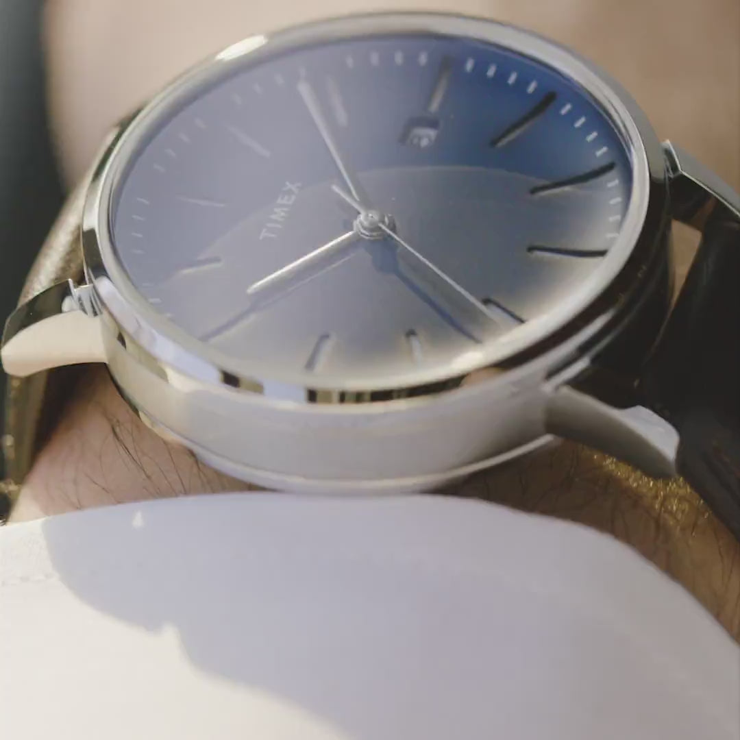 The watch is outfitted with a brown, natural leather strap that is as comfortable as it is stylish. With quick-release spring bars, adjusting or changing the strap becomes a hassle-free task. The watch also features simple, elevated markers and a functional date window, ensuring that it's not only a style statement but a practical addition to your daily accessories.